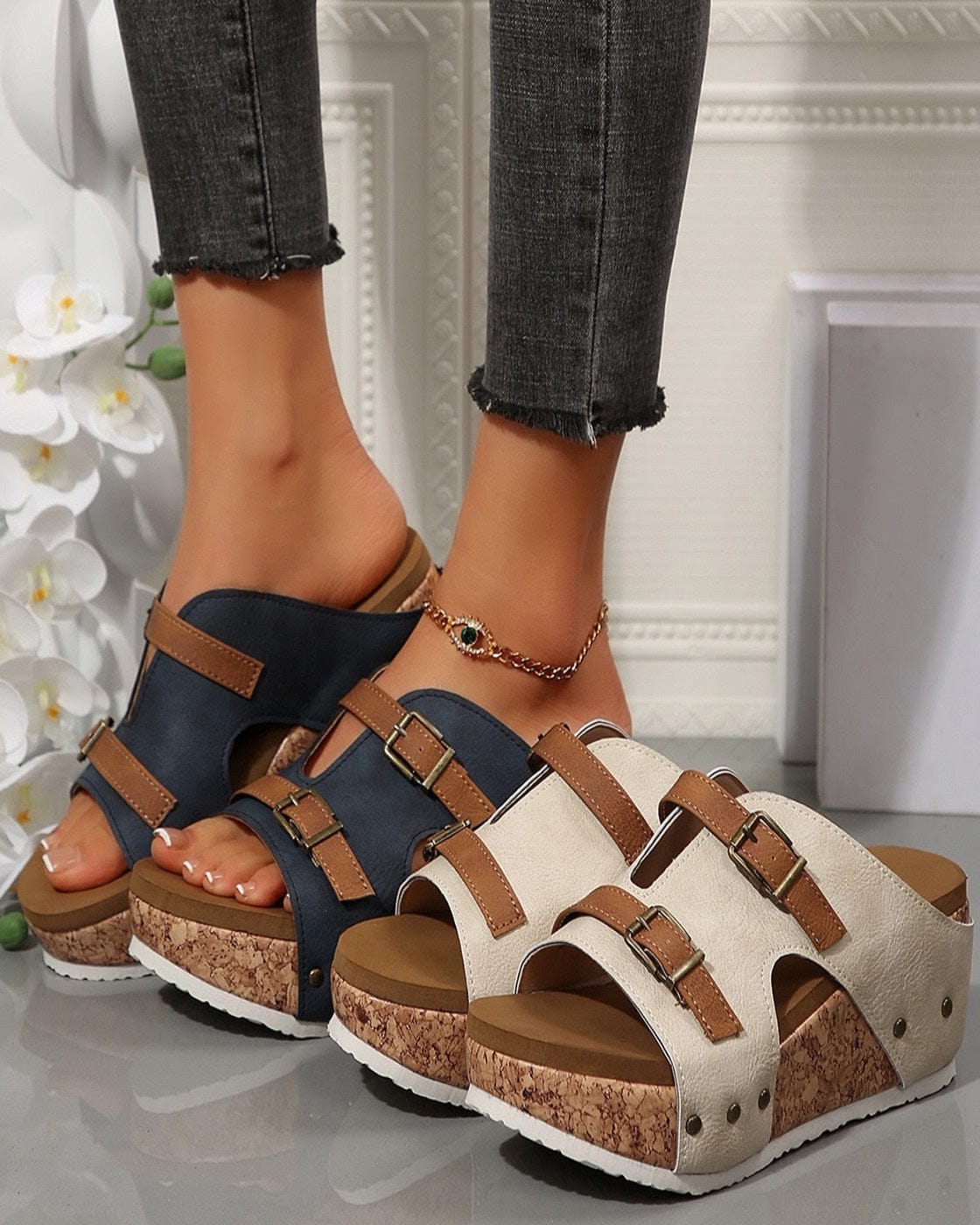 Sandales élégantes avec deux boucles en métal, confortables et à la mode pour tous les jours.