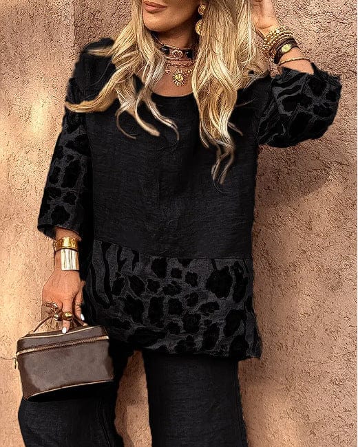 Adoptez la force à son meilleur avec cet ensemble croisé à imprimé léopard, confectionné en coton et lin, d'une douceur exceptionnelle.