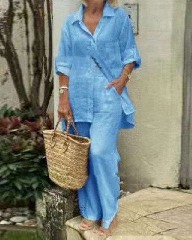 Démarquez-vous avec un look élégant et moderne grâce à cet ensemble femme composé d'un cardigan à manches longues et d'un pantalon confortable.